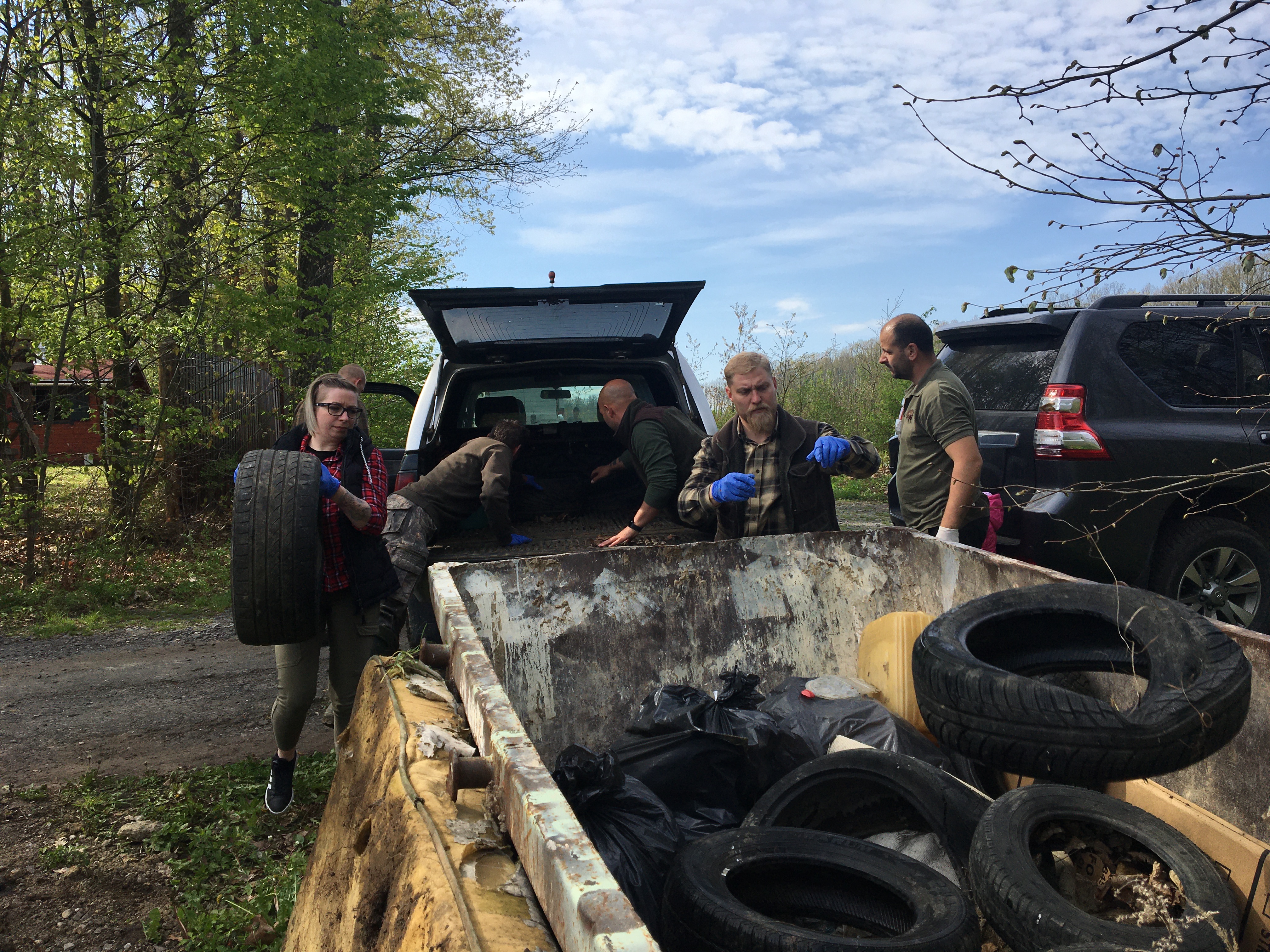 Több mint harmincan, javarészt leendő vadászok (tanfolyamosaink) és hozzátartozóik, valamint vadászok és civilek gyülekeztek reggel 8 órakor a Páll Endre Ifjúsági Oktatóközpontnál, ahová a szervezők az előző nap már elhelyeztették az 5 köbméteres konténert, tudva, hogy az biztosan megtelik az akció végére. Kiosztásra kerültek a gumikesztyűk és a műanyagzsákok, és 4 fős csapatok indultak el az erdőben a szélrózsa minden irányába, természetesen a korábban már feltérképezett „gócpontok” felé. A Zaranyi erdőben gyakran találkozunk a városból kijáró túrázókkal, futókkal, vagy kerékpárosokkal, akik sajnálatosan rengeteg szemetet hoznak ki magukkal, így az összegyűjtendő hulladék nagy része az utak két oldalán, 5-5 m-es sávban volt megtalálható. Ezen felül három illegális szemét lerakóhelyet is feltérképeztek az önkéntesek, így délre nemhogy meg tellett, de még kicsinek is bizonyult a kihelyezett konténer.